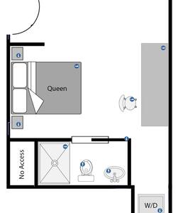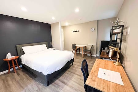 We care about good night sleep. - Queen bed with Firm mattress (Guests are always asking where to buy!) - 100% cotton high quality white linens - Night stand (end table) with charging station. - Wall hangers - In unit laundry - Small desk/office area